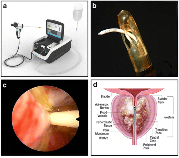 El sistema Rezum utiliza la radiofrecuencia para generar energía térmica “húmeda” en forma de vapor de agua, que se inyecta en la zona de transición y/o lóbulo medio del tejido prostático en dosis controladas de 9 segundos (véase la imagen a continuación). El vapor que se inyecta en el tejido prostático se dispersa rápidamente por el espacio intersticial entre las células del tejido. En contacto con el tejido, el vapor se enfría y se condensa, liberando la energía térmica almacenada, lo que desnaturaliza las membranas celulares y causa la muerte de la célula. Las células desnaturalizadas son absorbidas por el organismo, lo que reduce el volumen de tejido prostático adyacente a la uretra. El proceso de condensación de vapor también ocasiona un rápido colapso de la vasculatura en la zona del tratamiento, dando como resultado una intervención sin pérdida de sangre.